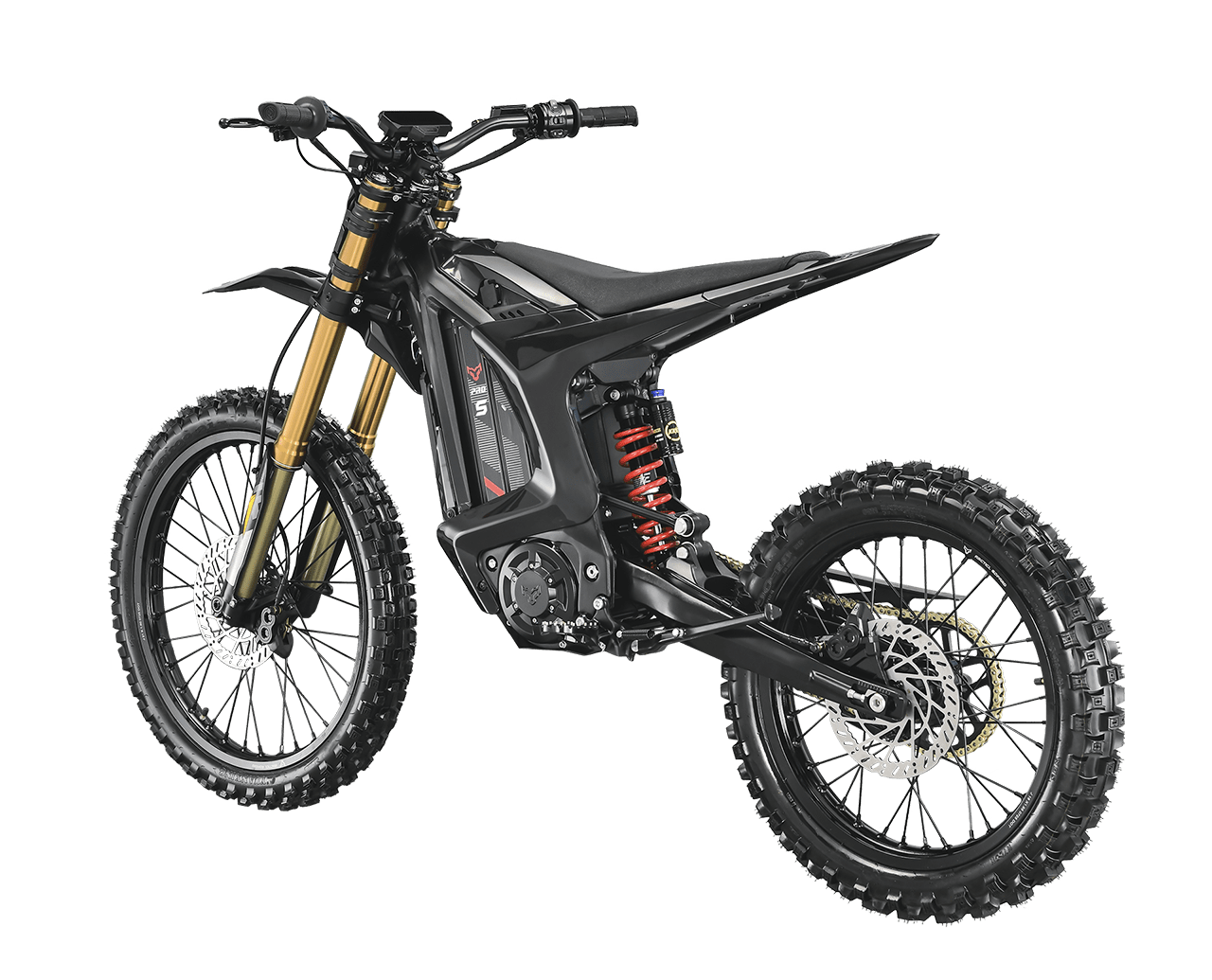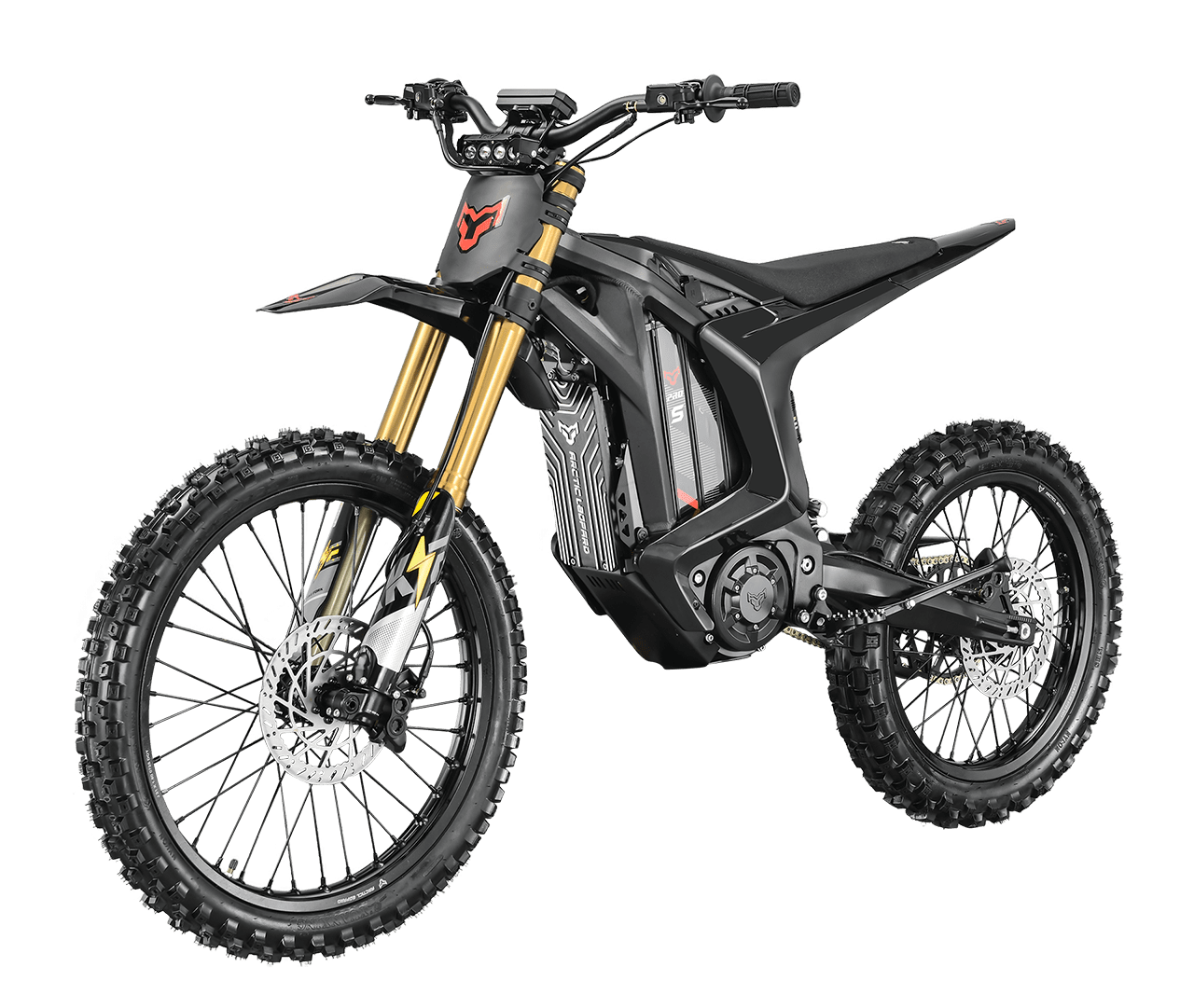 La XE PRO S OFFROAD est une base pensée pour le tout-terrain et le MX : 20 kW, architecture 72 V et deux montes au choix selon votre pratique : 19/16″ ou 21/18″ (+100€). Fourche inversée bronze, géométrie affûtée et pneus dirt pour conserver de la précision quand ça s’engage.